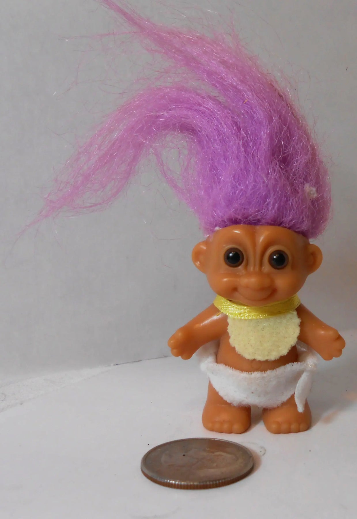 Russ Light Purple Hair Troll Baby Doll in Diaper and Bib 2" Tall